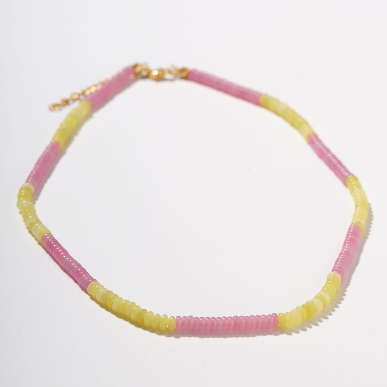 | At Superlikeus, we believe in jewellery that expresses inner brightness and playful spirit. This necklace is delicately handcrafted from soft pink and sunny yellow agate, blending pastel tones into a palette that feels both soothing and joyful. The gentle hues echo warmth, optimism, and light-hearted connection—like a summer afternoon distilled into a wearable form.