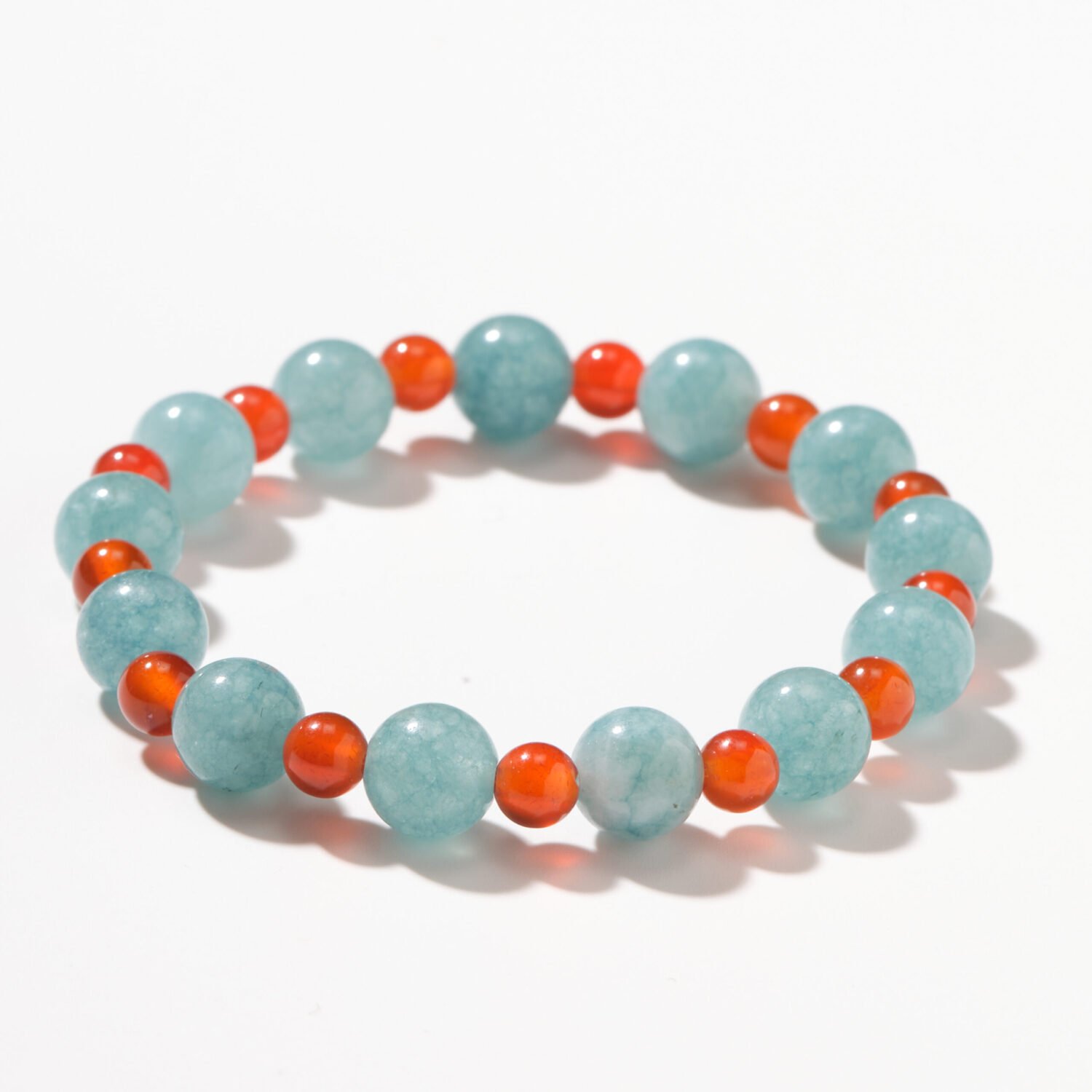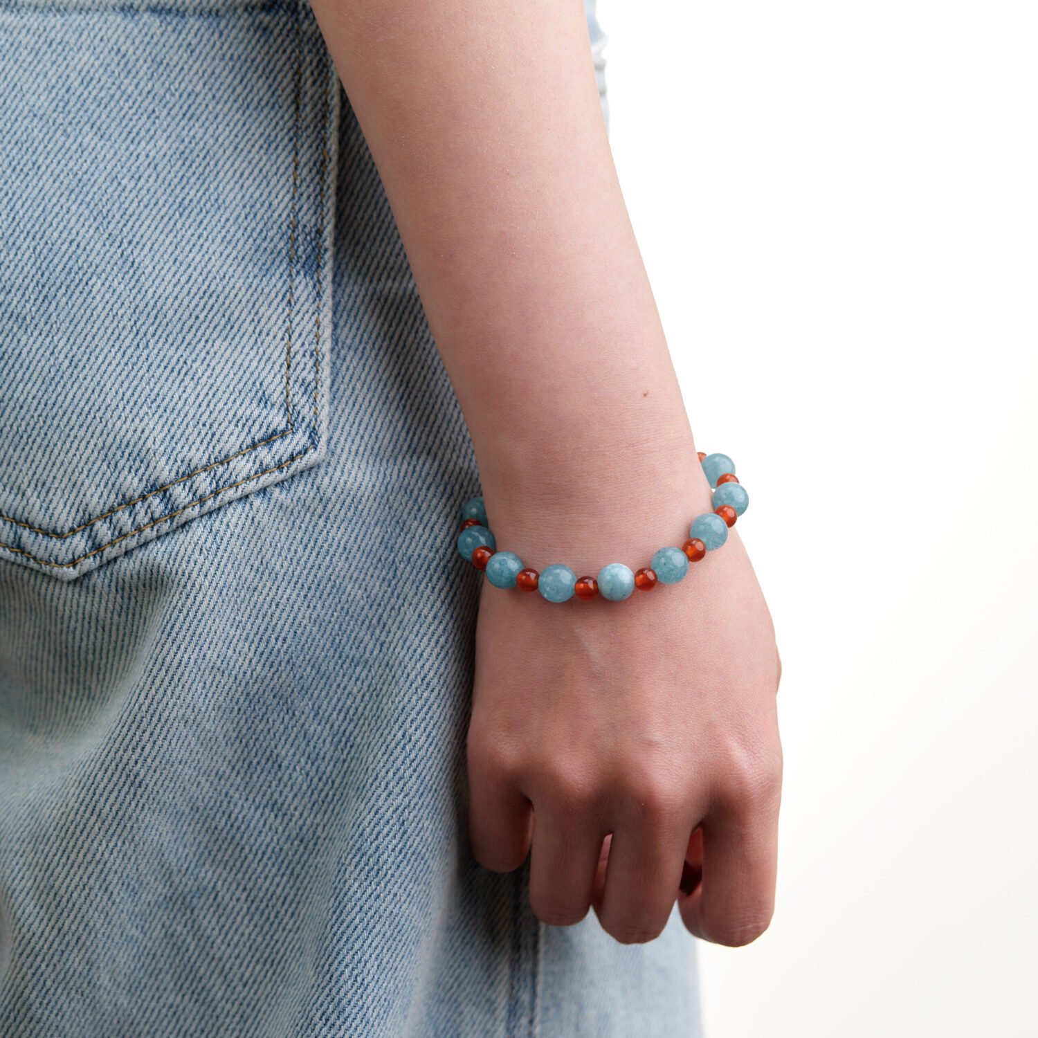 | At Superlikeus, every piece of jewellery is a carrier of positive energy. These bracelets are carefully crafted with beads made of green agate and red agate. The green agate exudes a fresh and peaceful aura, symbolizing the vitality and energy of nature. The red agate, with its vivid color, brings passion and courage, signifying the enthusiasm and hope of life. |
