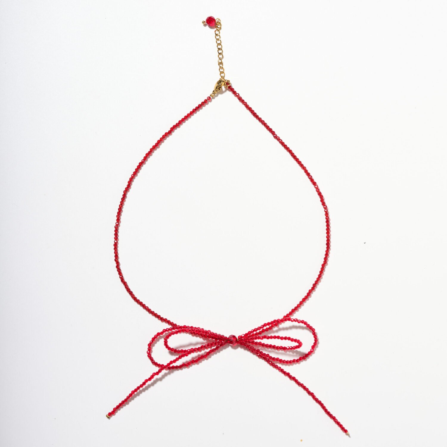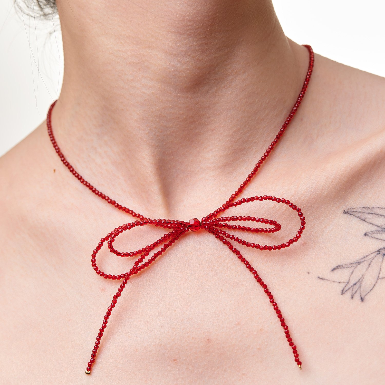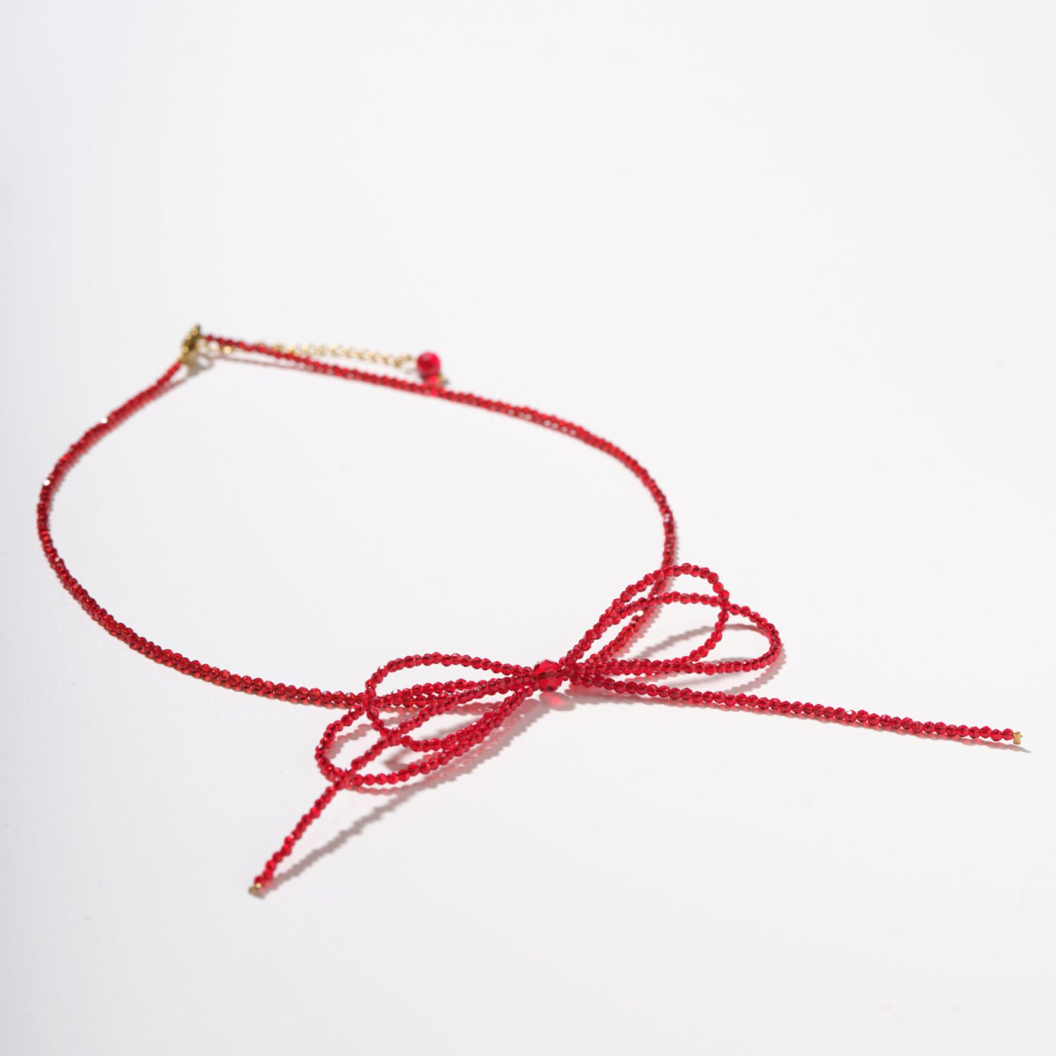 | At Superlikeus, we are dedicated to creating jewellery that sparks joy and symbolizes meaningful emotion. This necklace is crafted from radiant red crystal beads, its vivid hue representing passion, courage, and heartfelt connection. A delicate bow detail adds a sense of playful charm and softness, blending elegance with a touch of romantic spontaneity.
